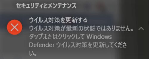 まずWindowsの通知が と言ってきた。 それをつつくと〈Windows Defender ウイルス対策〉というウィンドウが開き、その中の[定義の更新]というボタンをつつくと と表示され、その中の[定義の更新]というボタンを何度つついても結果はおなじ。インターネッ…